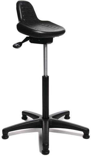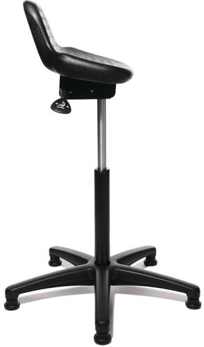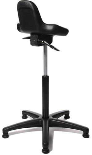 universell einsetzbar · Sitzhöhenverstellung mit Sicherheitsgasfeder H 550-810 mm · ergonomisch geformter Integralschaum-Sitz · Sitzneigungsverstellung per Handhebel · stabiles, kippsicheres Fünffuß-Kunststoff-Fußkreuz, schwarz mit Fußgleitern