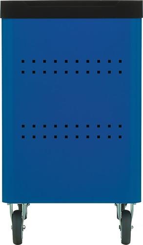robuste Stahlblechkonstruktion · GEDORE blau pulverbeschichtet (RAL 5017) · mit 6 auf kugelgelagerten Führungsschienen herausziehbaren Schubladen mit 100% Auszug · seitliche Abrundungen, Minimierung von Stoßkanten · Arbeitsplattform mit Abdeckung aus PP-Kunststoff mit Rollschutzkante (Schutz vorm Herabfallen von Kleinteilen) · Euro-Lochung (10x38) an beiden Seiten, ermöglicht das individuelle Bestücken von Haken und Werkzeugen · wendig und leicht zu steuern dank des Fahr-& Lenkgriffes · Einzelauszugssperre verhindert das selbstständige Öffnen mehrerer Schubladen · abschließbar mittels eingebautem Zylinderschloss inkl. 2 Schlüssel Maß über alles aufgebaut inkl. Räder, ohne Griff (B x T x H) 625 x 510 x 903 mm Innenmaß Schubladen (B x T x H) 5 x 480 x 400 x 80 mm Innenmaß Schubladen (B x T x H) 1 x 480 x 400 x 160 mm Tragkraft pro Schublade 20 kg / statische Gesamtbelastbarkeit 300 kg